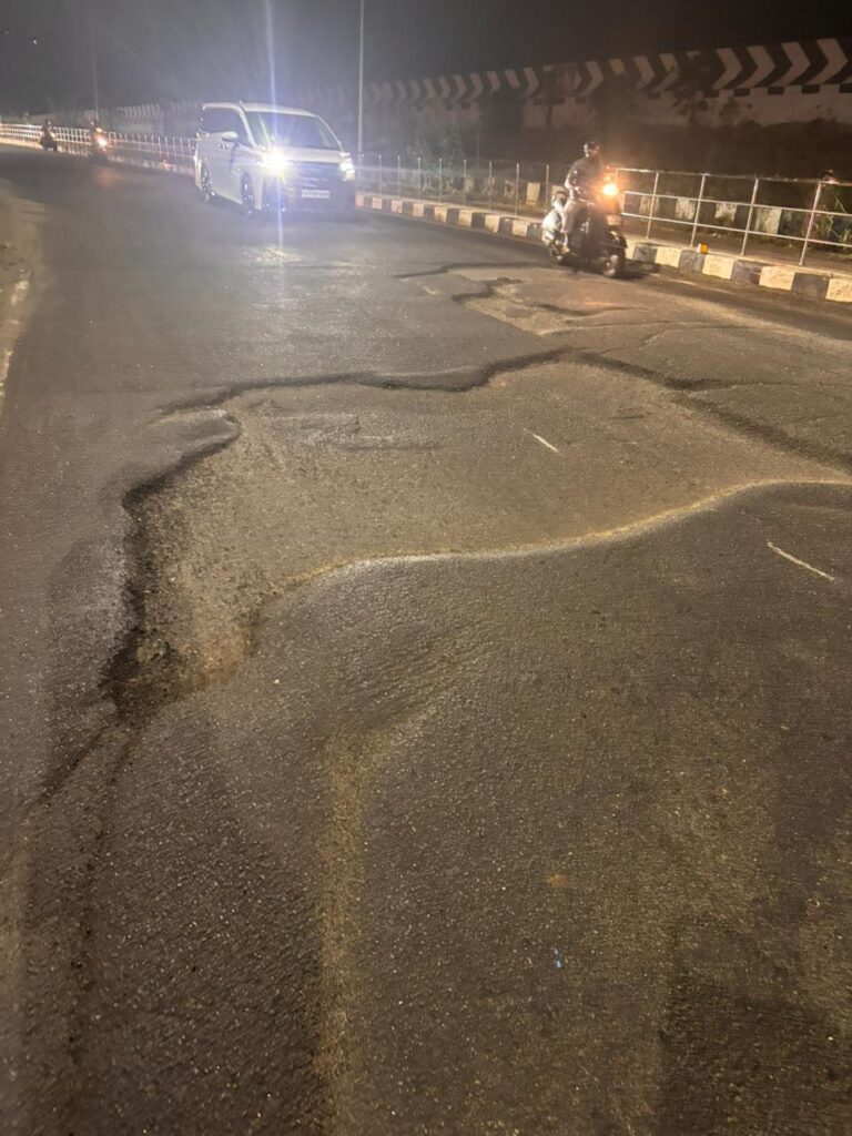 இதனால் இரவு நேரம் பலர் விழுந்து காயமடைகின்றனர். இந்தச் சாலை அமைக்கும் போதே பல இடங்களில் சேதமடைந்திருந்தது. திறப்பு விழாவுக்கு முன்பே சில இடங்களில் தார் பெயர்ந்து காணப்பட்டது. தரமற்ற பணியால்தான் சாலை உடனுக்குடன் சேதமடைவதாக வாகன ஓட்டிகள் கூறுகின்றனர் இது குறித்து சம்பந்தப்பட்ட அதிகாரிகள் இக்காலத்தின் தன்மையை உறுதி செய்து பிறகு வாகனத்தை அனுமதிக்க வேண்டும் எனவும் இது தொடர்ந்து பாலத்தில் பள்ளங்கள் விழுவதால் பாலத்தில் பயணிப்போம் பயத்திலேயே பயணம் செய்ய வேண்டி உள்ளது.
