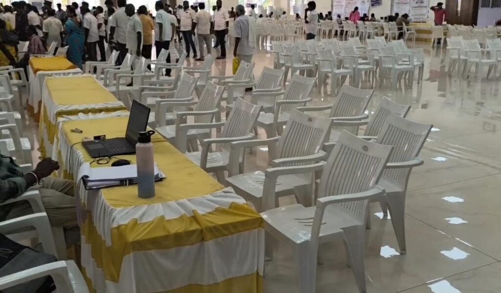 இந்த முகாமில் குறிப்பிட்ட துறைகளை சேர்ந்த அதிகாரிகள் மனுக்களை பெற தயாராக இருந்த போதும் இந்த முகாமில் மனுக்களை அளிப்பதற்கு பொதுமக்கள் யாரும் வராததால் காலி இருக்கைகளாக வெறிச்சோடி காணப்பட்டது.