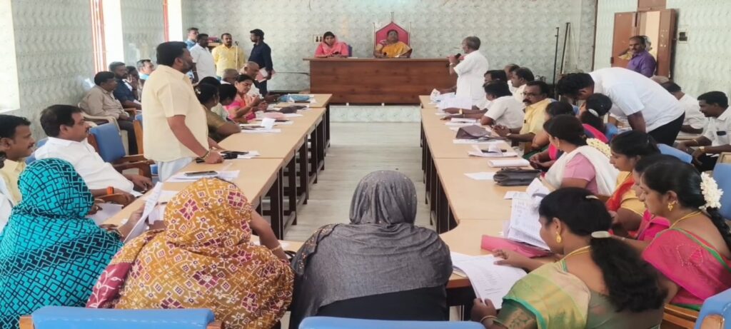 எனவே நகர் மன்ற தலைவரும், நகராட்சி ஆணையாளரும் பதில் கூறச் சொல்லி அமமுக மற்றும் திமுகவைச் சேர்ந்த நகர்மன்ற உறுப்பினர்கள் இருவரும் ஒரு மணி நேரத்திற்கும் மேலாக தொடர்ந்து வாக்குவாதத்தில் ஈடுபட்டனர்.
