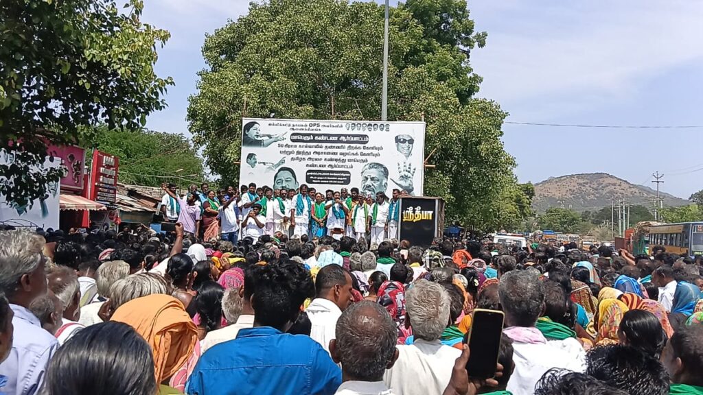 இன்று உசிலம்பட்டி முருகன் கோவில் முன்பு உசிலம்பட்டி எம்எல்ஏ அய்யப்பன் தலைமையில், விவசாய சங்கத்தினர், பெண்கள் என ஆயிரக்கணக்கான மக்கள் ஒன்றிணைந்து கண்டன ஆர்ப்பாட்டம் நடத்தினர்.
