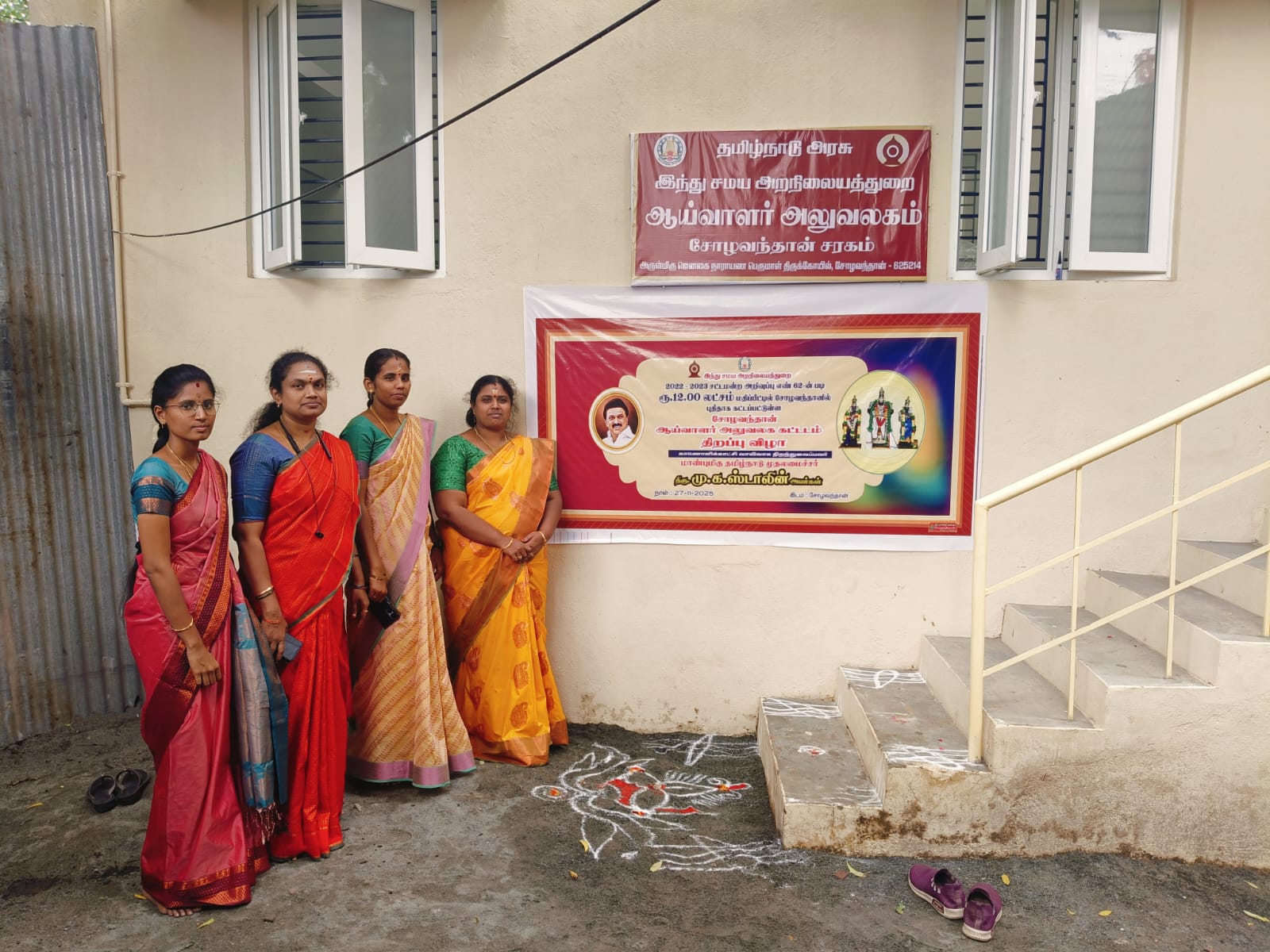 மதுரை மாவட்டம் சோழவந்தானில் இந்து சமய அறநிலைத்துறை ஆய்வாளர் அலுவலகத்தை தமிழ்நாடு முதலமைச்சர் காணொளி காட்சி வாயிலாக திறந்து வைத்தார். 12 லட்சம் ரூபாய் மதிப்பில் கட்டப்பட்ட கட்டிடத் திறப்பு விழாவிற்கு ஆய்வாளர் ஜெயலட்சுமி தலைமை வகித்தார்.