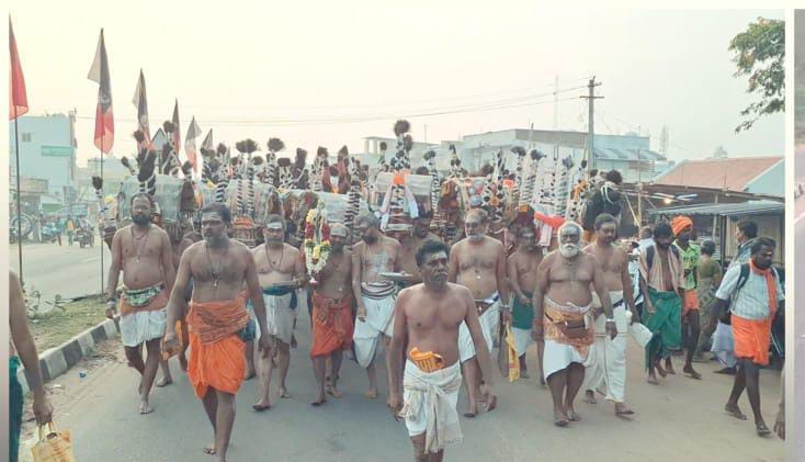 நத்தம் வழியாக வைரவேலுடன் நகரத்தார் காவடி சென்றது. திண்டுக்கல் மாவட்டம் பழனி தைப்பூச விழாவிற்கு காரைக்குடி நகரத்தார் காவடி குழுவினர் வைரவேலுடன் 350க்கும் மேற்பட்ட பக்தர்கள் காவடி எடுத்து நத்தம் வழியாக பழனி சென்றனர்.