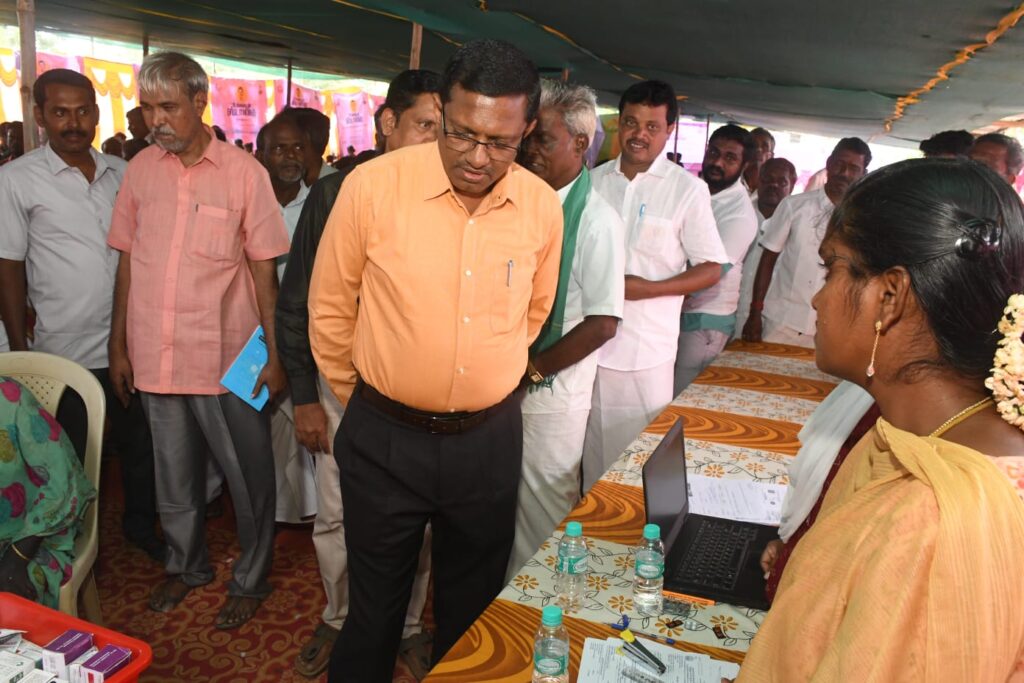 அரியலூர் மாவட்டம் ஆண்டிமடம் ஒன்றியத்திற்குட்பட்ட ,பெரியகருக்கை, பெரியாத்துக்குறிச்சி, நாகம்பந்தல், ஶ்ரீராமன் ( ரெட்டிபாளையம்) உள்ளிட்ட கிராமங்களுக்கு ,பெரிய கருக்கை ஊராட்சியின் நியாய விலைக் கடை அருகே நடைபெற்ற உங்களுடன் ஸ்டாலின் முகாமினை , அரியலூர் மாவட்ட கலெக்டர் பெ. இரத்தினசாமி, நேரில் பார்வையிட்டு, ஆய்வு செய்து, பயனாளிகளுக்கு பல்வேறு நல திட்ட உதவிகளை வழங்கினார்.