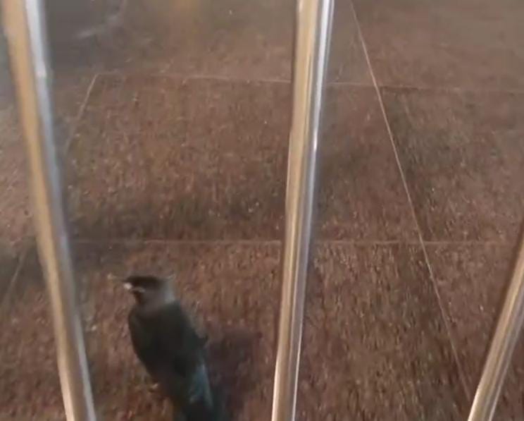 குஞ்சு வளர்ந்த நிலையில் அங்கிருந்து கீழே விழுந்து விட்டது. அப்பகுதியில் பணியில் இருந்த இரண்டு அதிகாரிகள் அந்த காக்கை குஞ்சை விரட்டினார்கள்.