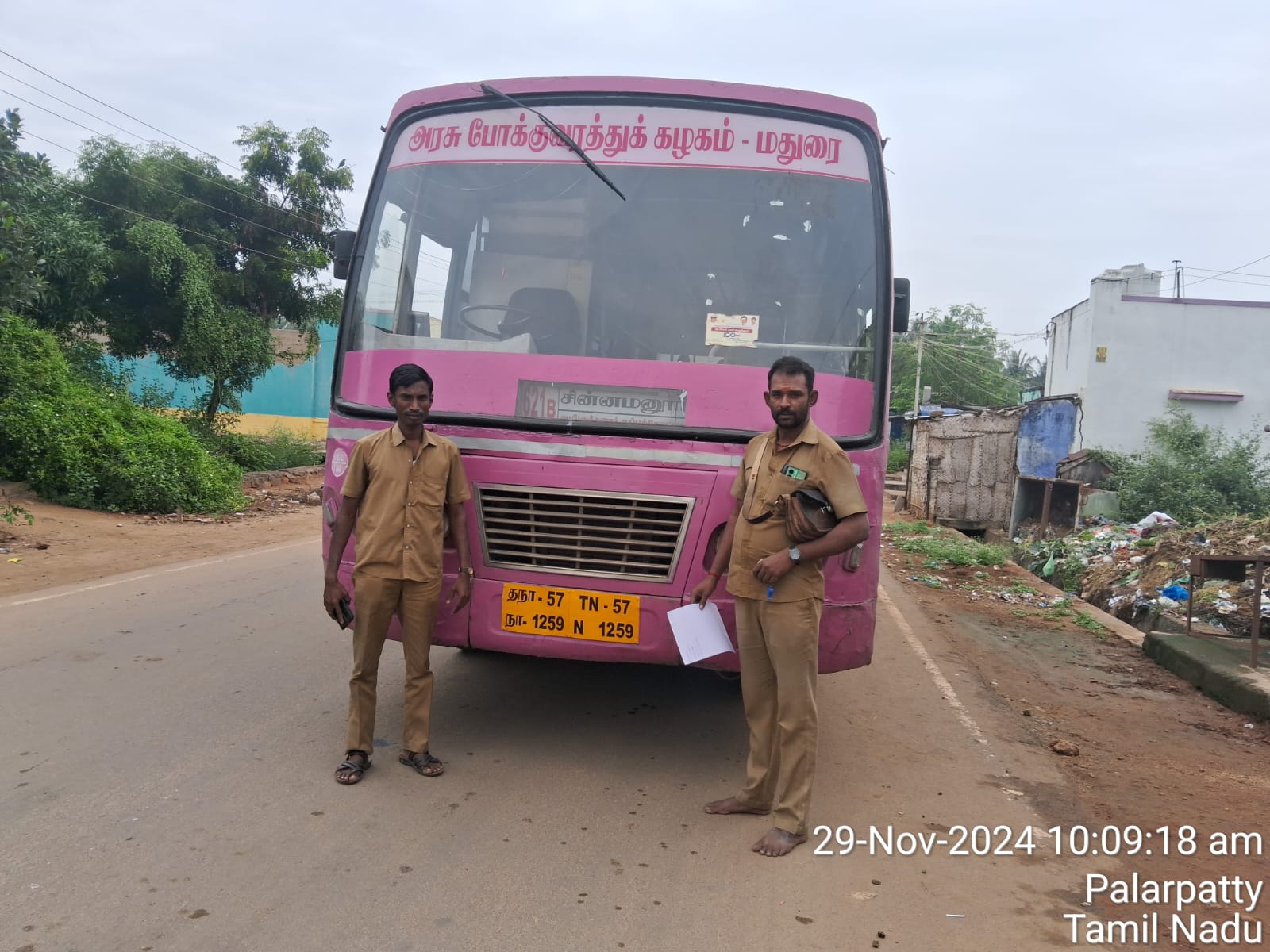 அரசு பேருந்து ஒட்டுநர் முருகன் மற்றும் நடந்துநர் செல்வகுமாருக்கு பொது மக்கள் நன்றி தெரிவித்தனர்.