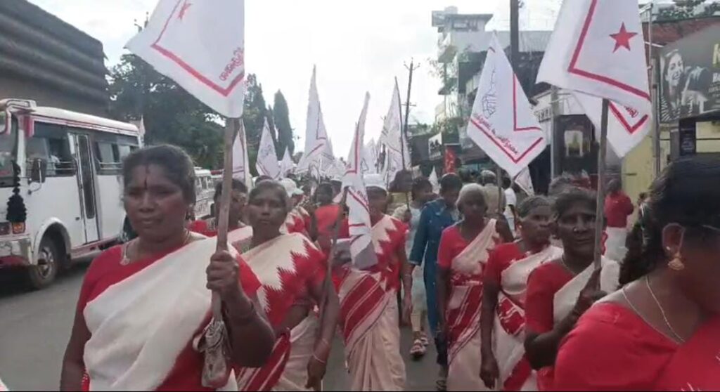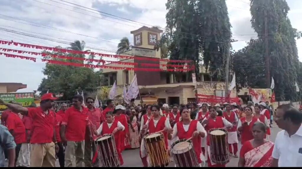 குமரி மாவட்டம் குழித்துறை பகுதியில் அனைத்திந்திய மாதர் சங்கம் சார்பில் 17 ஆவது மாநில மாநாடு இன்று நடைபெற்றது.மாநாட்டின் முதல் கட்டமாக படந்தாலுமூடு பகுதியில் இருந்து மாநாடு திடலான குழித்துறை பகுதி வரை மாதர் சங்கத்தினரின் பேரணி நடைபெற்றது.