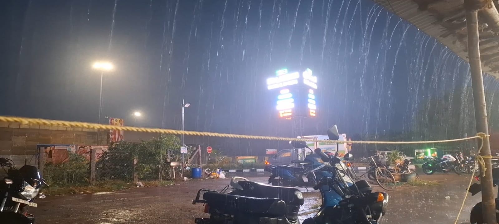இந்நிலையில் இன்று காலை முதல் மாலை 4 மணி வரை கடுமையான வெப்பம் வாட்டி வதைத்தது. பின்னர் மாலையில் இதமான காற்று வீச தொடங்கி ஜில்லென்று குளிர்ச்சியான சூழல் நிலவியது. அதன் பின்னர் ஒரு மணி நேரத்திற்கும் மேலாக வெளுத்து வாங்கியது மழை.