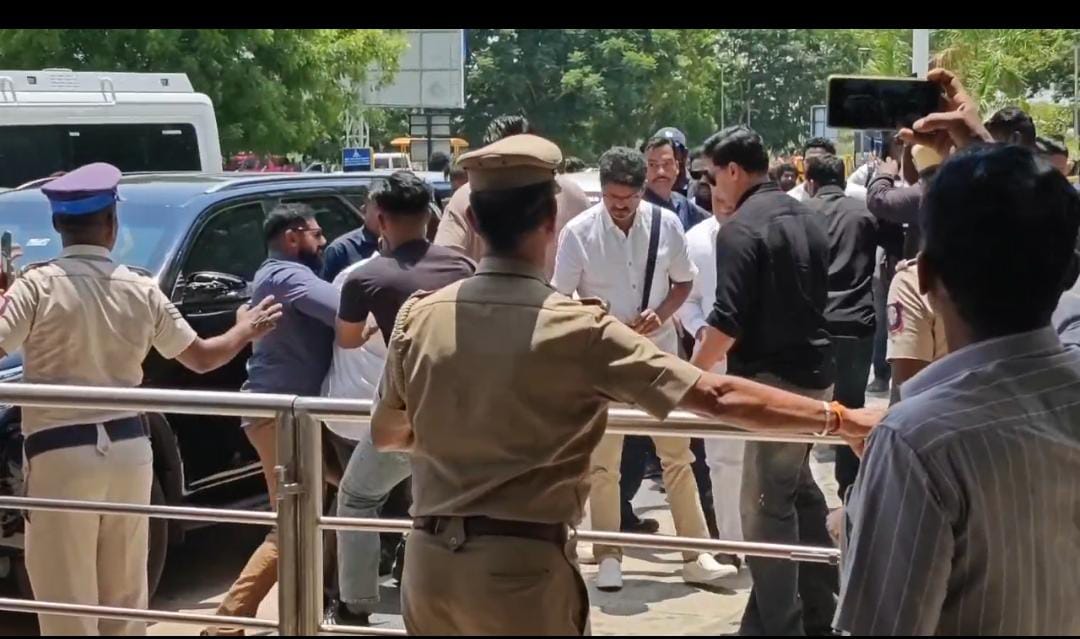 அப்போது மதுரை விமான நிலையத்தில் ஆயிரக்கணக்கான தவெக தொண்டர்கள் மற்றும் விஜய் ரசிகர்கள் கூடியதால் பரபரப்பு ஏற்பட்டது.