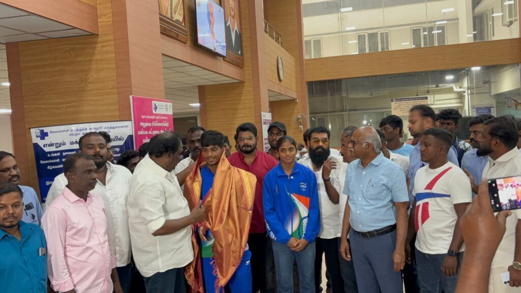 தமிழ்நாடு அமெச்சூர் கபடி சங்க தலைவர் சோலை ராஜா மற்றும் வேலம்மாள் மருத்துவமனை முதன்மை நிர்வாக அதிகாரி மணிவண்ணன் மாமன்ற உறுப்பினர் துரைப் பாண்டி, சவ்வாஸ் உசேன், ஆறுமுகம் ,ராமன் ஆகியோர் வரவேற்பு அளித்தனர்.