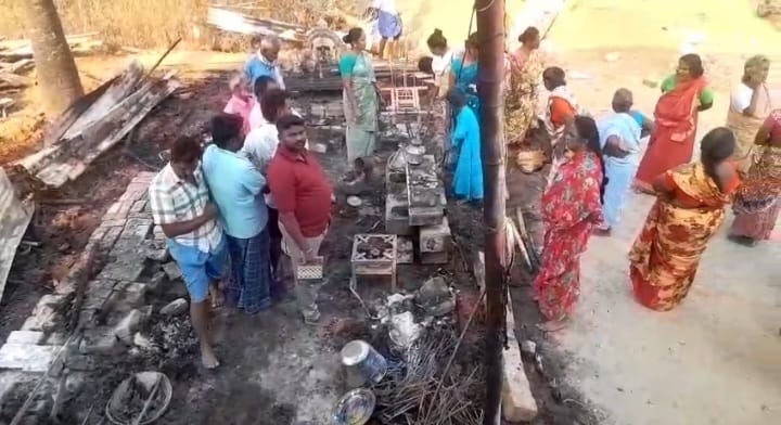 காமாட்சி அம்மன் கோவிலை தீ வைத்து எரித்து சேதம் பத்து லட்ச ரூபாய் சேதம்..,