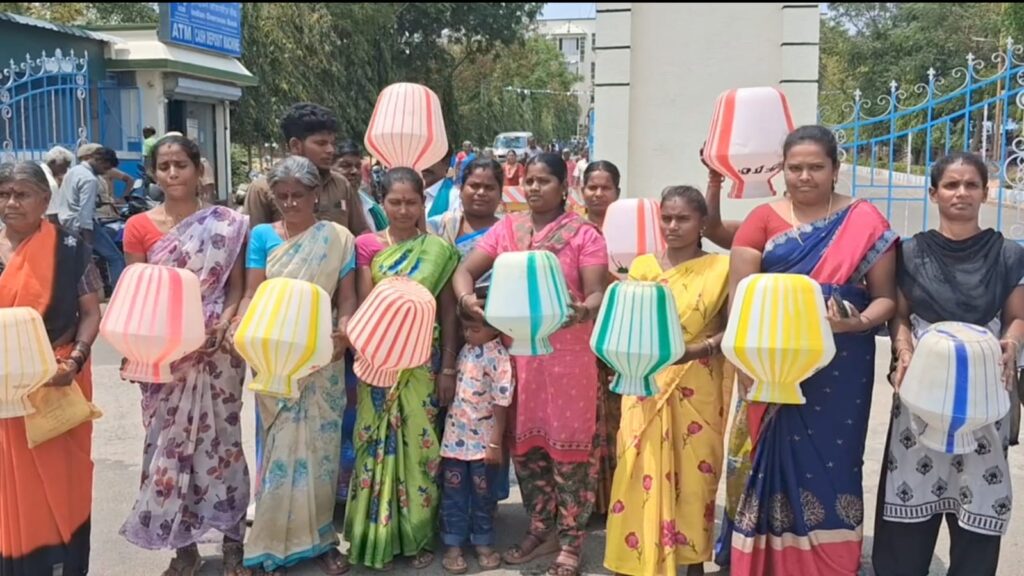 இது தொடர்பாக பலமுறை அதிகாரிகளிடம் புகார் அளித்தும் எந்த நடவடிக்கையும் எடுக்கப்படவில்லை எனக் கூறிய அவர்கள், திங்கள்கிழமை மாவட்ட ஆட்சியர் அலுவலகத்தில் நடைபெற்ற பொதுமக்கள் குறைதீர்க்கும் நாள் கூட்டத்திற்கு வந்தனர். அப்போது 50-க்கும் மேற்பட்ட பொதுமக்கள் காலி குடங்களை எடுத்துக்கொண்டு ஆட்சியர் அலுவலகம் முன்பு வைத்து நூதன முறையில் போராட்டம் நடத்தி மனு அளித்தனர்.
