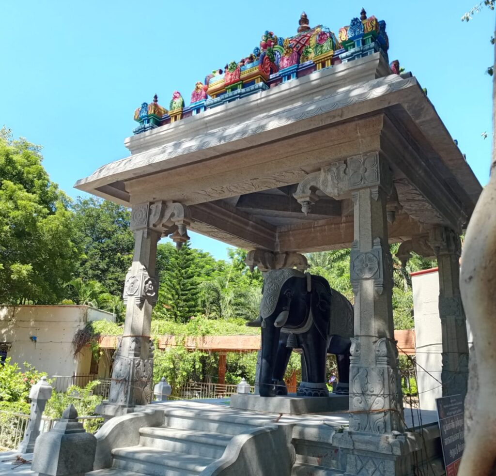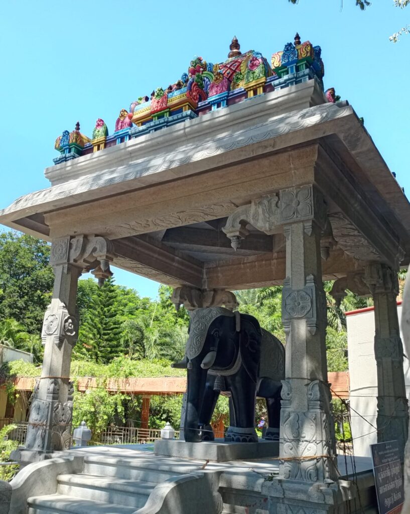 மேலும் 12 டன் எடைகொண்டஒரே கல்லை செதுக்கி 4டன் குறைக்கப்பட்டு அழகு மிளர 8 டன் எடையில் யானை சிலை தயார்ப்படுத்தப்பட்டுள்ளது. மேலும் கல்லிலான4 தூண்கள் மற்றும் கற்களாலான கட்டமைப்புகளுடன் மேல்புறத்தில் அழகு மிளிரகோபுரத்துடன்