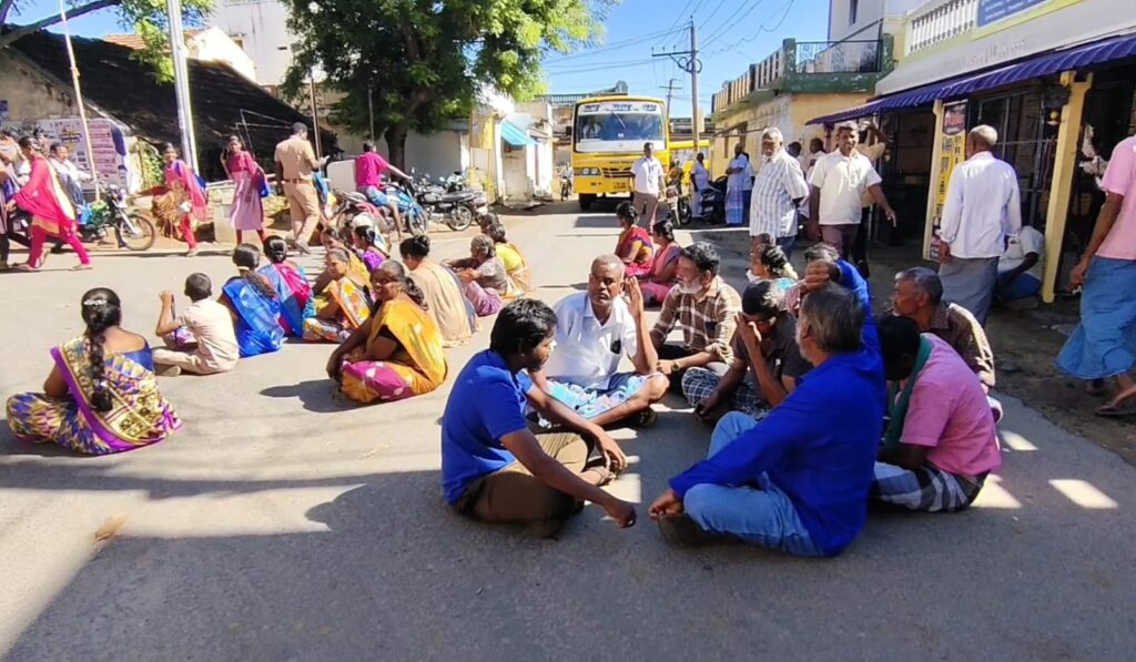 திருச்சி மாவட்டம், துறையூர் அருகே உள்ள புத்தனாம்பட்டி பேருந்து நிறுத்தம் பகுதியில் பொதுமக்கள் திடீரென சாலை மறியலில் ஈடுபட்டனர். புத்தணாம்பட்டி பகுதியில் உள்ள ஸ்ரீ மகா மாரியம்மன் கோவில் கடந்த 10 ஆண்டுகளுக்கு மேலாக தனிநபர் ஆக்கிரமிப்பில் இருப்பதாலும், இதனால் விசேஷ தினங்களுக்கு கோயில் திறக்காமல்