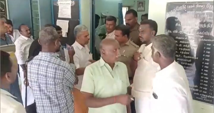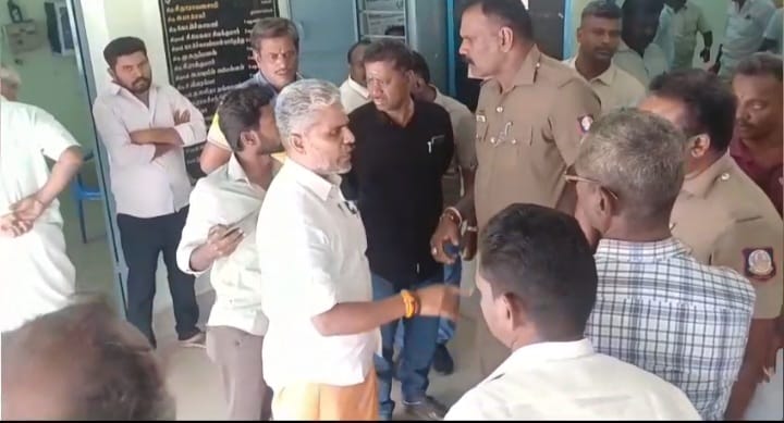 ஆனால் அவரை அலுவலக ஏலத்தில் கலந்து கொள்ள விடாமல் வெளியே போகச் சொல்லி போலீசாரை விட்டு வெளியேற்றியதாக தெரிகிறது. இதனால் விரக்தி அடைந்த குணசேகரன் தன்னிடம் பெற்ற 3.50 லட்சம் லஞ்ச பணத்தை திருப்பி தர வேண்டும் இல்லையென்றால் பேரூராட்சி அலுவலகத்தை விட்டு செல்ல மாட்டேன் என தொடர் வாக்குவாதத்தில் ஈடுபட்டார். இதனால் பேரூராட்சியில் பதட்டமான சூழ்நிலை ஏற்பட்டது மேலும் பேரூராட்சி செயல் அலுவலர் மற்றும் திமுகவைச் சேர்ந்த தலைவர் துணைத் தலைவர் ஆகியோர் தன்னை காவல்துறையின் மூலம் வெளியேற்ற நடவடிக்கை எடுப்பதாகவும் மிரட்டுவதாகவும் குற்றம் சாட்டினார். அதனால் ஏலக்கூட்டம் நடைபெறும் இடத்தில் பரபரப்பு ஏற்பட்டது.