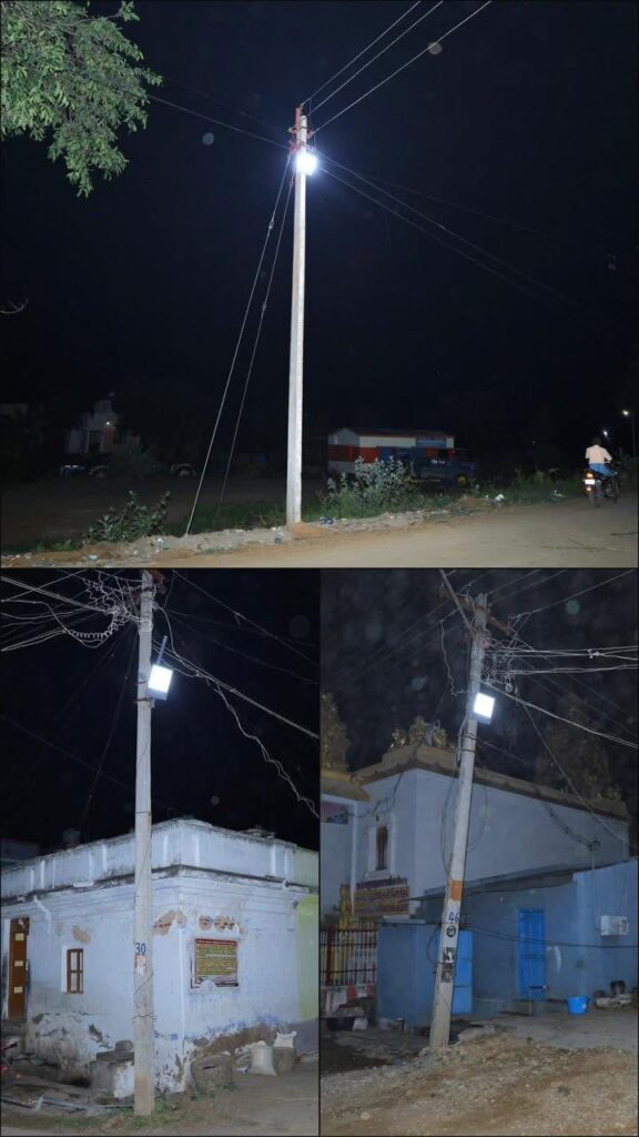 கிராமத்திற்கு மின்விளக்கு அமைத்து கொடுத்த சமூக சேவகர்..,