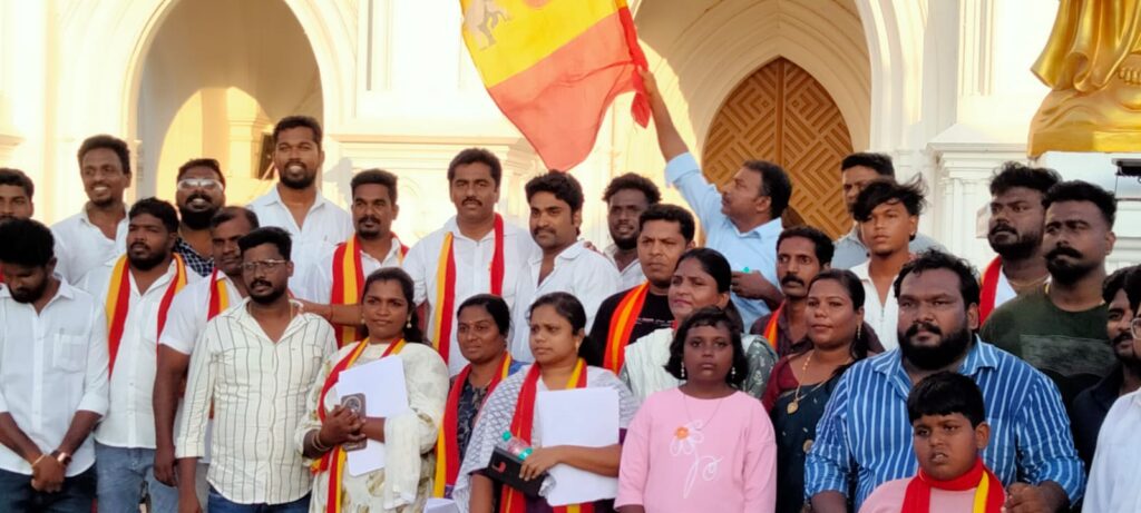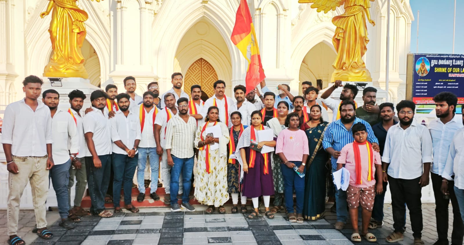 கன்னியாகுமரி தூய அலங்கார உபகார மாதா திருத்தலம் முன்பிருந்து தவெக மாவட்ட செயலாளரும், கன்னியாகுமரி சட்டமன்றத் தொகுதி வேட்பாளருமான எஸ்.ஆர்.மாதவன் தலைமையில் பொதுமக்களிடம் அக்கட்சியினர் வாக்கு சேகரித்தனர்.