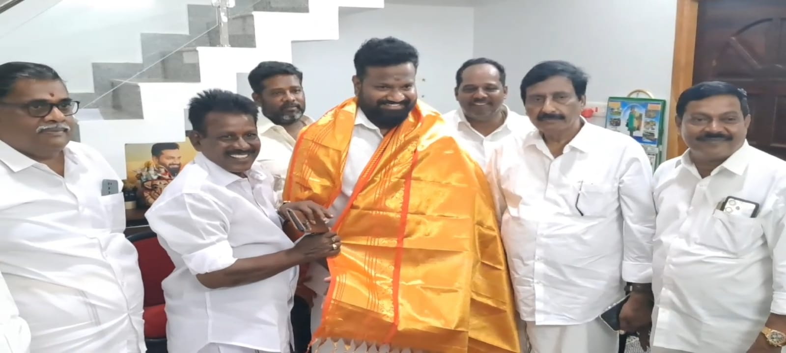 விழாவில் கலந்து கொண்ட அதிமுக மாநில செயலாளர் அன்பழகன் தமிழ் வேந்தனுக்கு ஆளுயுர மாலை அணிவித்து வாழ்த்துக்களையும் தெரிவித்தார்.