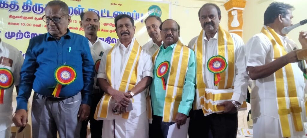 தேனி வீரசிகாமணி மற்றும் மாவட்ட நிருவாகிகளுக்குப் பதவி பிரமாணம் செய்து வைத்தனர். கூட்டமைப்புத் தலைவர் கவிஞானி மு. ஞானமூர்த்தி அனைத்துப் பொறுப்பாளர்கள் சார்பாக ஏற்புரை நிகழ்த்தினார். துணைத் தலைவர் பிச்சி ஆதிலிங்கம் குறள் வாழ்த்து பாடினார். பொதுச் செயலாளர் தங்க. ஆதிலிங்கம் வரவேற்புரையாற்றினார்.துணைப் பொது செயலாளர் ரெ. ராஜகோபால் நன்றியுரையாற்றினார்.