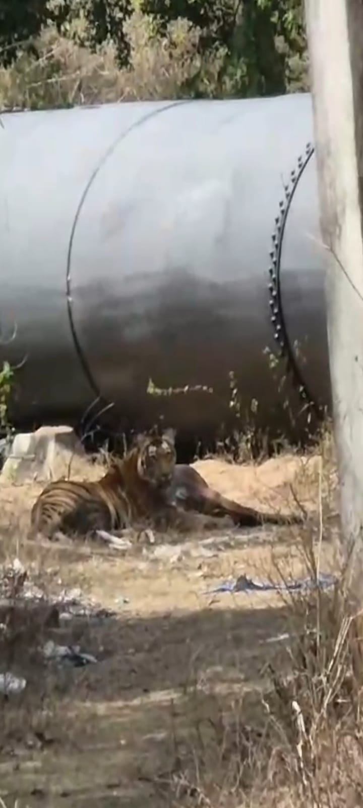 இந்த நிலையில் மாயார் நீர் மின் நிலைய பகுதியில் பிரம்மாண்டமாக உள்ள தண்ணீர் குழாய் மேல் படுத்து இருந்த புலியை கண்ட சுற்றுலா பயணிகள் அச்சத்துடன் அதைப் படம் பிடித்தனர். சுற்றுலா பயணிகளை முறைத்து பார்த்து புலி பின்பு கீழே இறங்கி வேட்டையாடிய கன்றுக்குட்டியை வனப்பகுதிக்குள் இழுத்துச் சென்றது. இந்த காட்சிகளை சுற்றுலா பயணிகள் படபடப்புடன் வீடியோ பதிவு செய்துள்ளது தற்போது சமூக வலைத்தளங்களில் வைரலாகி வருகிறது.