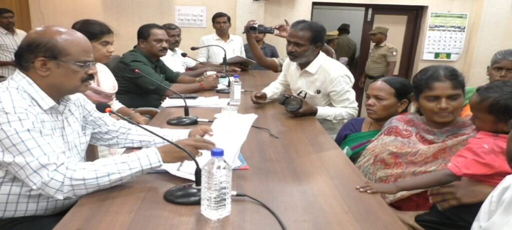இந்த நிலையில் உயிரிழந்த மணிவாசகத்தின் மனைவி நந்தினி இன்று மாவட்ட ஆட்சியர் அலுவலகத்தில் நடைபெற்ற மக்கள் குறைதீர் கூட்டத்தில் கோரிக்கை மனு வழங்கினார்: