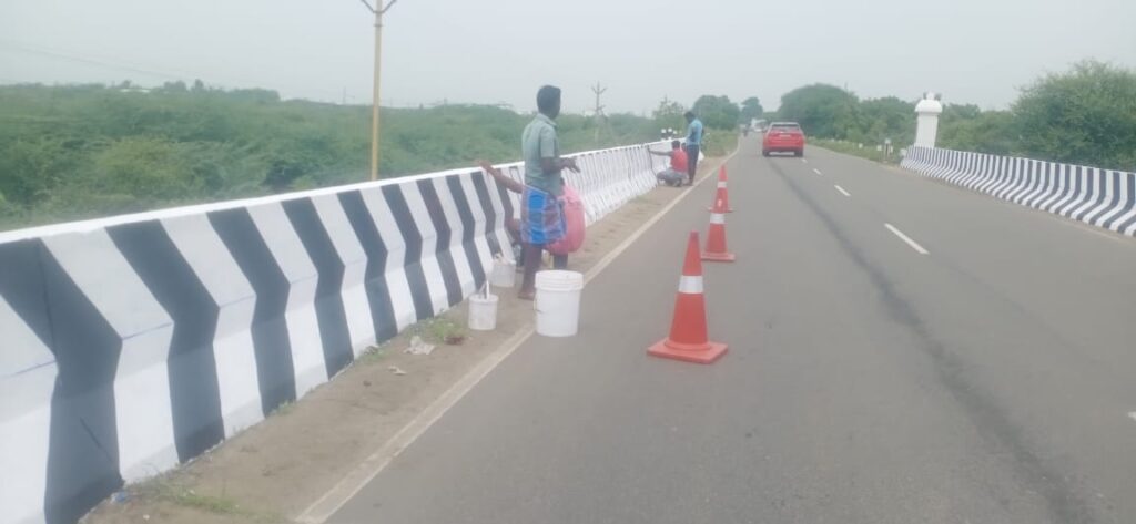 சிவகாசி நெடுஞ்சாலை துறை சார்பில் வெம்பக்கோட்டை சுற்றுவட்டார பகுதியில் உள்ள பாலங்களில் இரவு நேரங்களில் ஏற்படும் விபத்தை தடுப்பதற்காக பாலத்தின் சுவர்களில் வர்ணம் தீட்டும் பணிகள் தொடங்கியுள்ளது.