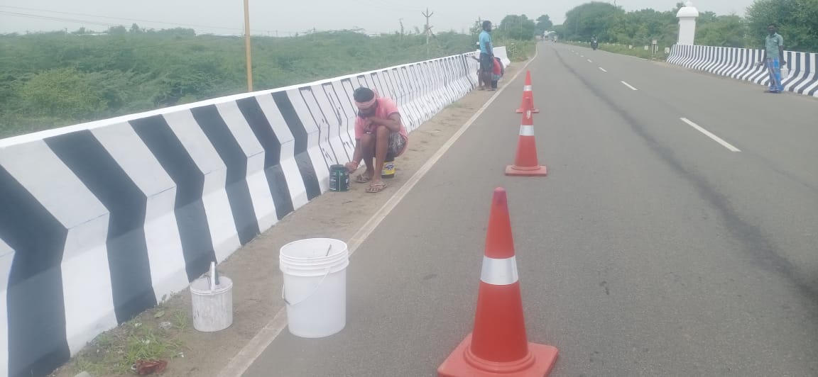 சிவகாசி நெடுஞ்சாலை துறை சார்பில் வெம்பக்கோட்டை சுற்றுவட்டார பகுதியில் உள்ள பாலங்களில் இரவு நேரங்களில் ஏற்படும் விபத்தை தடுப்பதற்காக பாலத்தின் சுவர்களில் வர்ணம் தீட்டும் பணிகள் தொடங்கியுள்ளது.