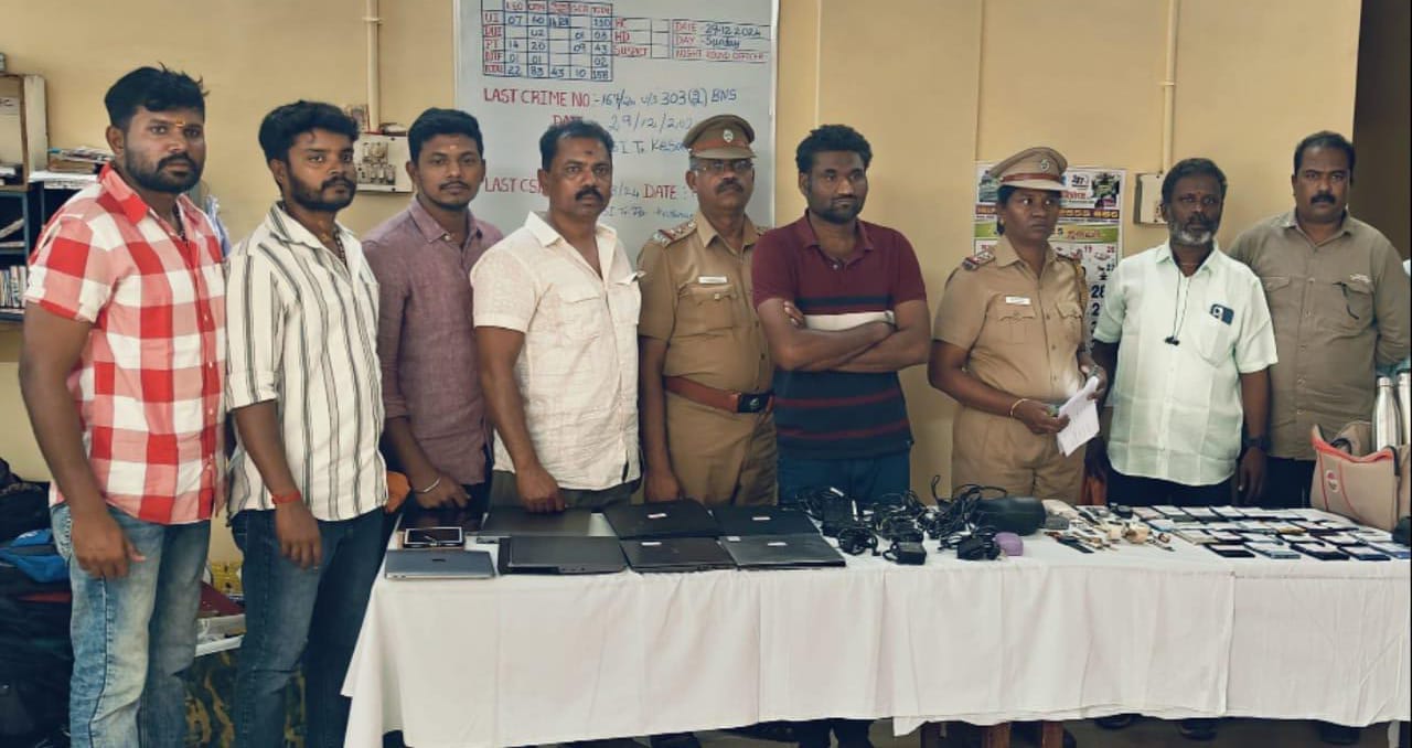 ரயில் பயணிகளுக்கு உதவுவதாக கூறி ரயில் நிலையங்களில் பயணிகளின் உடமைகளை 6ஆண்டுகளாக திருடி வந்த ரயில்வே மெக்கானிக்துறை உதவியாளர் கைது- 250க்கும் மேற்பட்ட பேக்குகள் , 30 பவுன் நகைகள், 30 செல்போன்கள், 9 லேப்டாப் உள்ளிட்டவைகள் பறிமுதல்