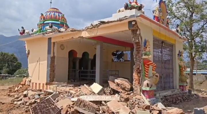 தற்போது கோயில் பராமரிப்பு பணி மேற்கொள்வதற்காக ஒரு தரப்பினர் நீதிமன்றம் சென்று உத்தரவைப் பெற்றது வந்து ஜேசிபி வைத்து கோயிலை இடிக்கும் பணியை மேற்கொண்டனர்.