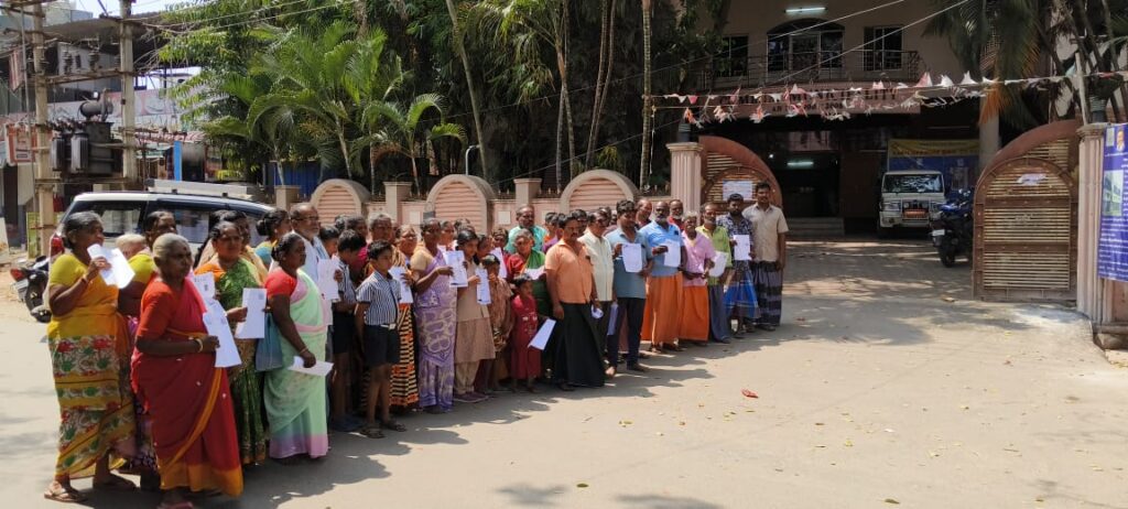 கம்பம் உழவர்சந்தையை சுற்றி ஏற்பட்டுள்ள போக்குவரத்து நெரிசலை குறைக்க, உழவர் சந்தையை சுற்றியுள்ள சாலையோர வியபாரிகளை வாரச்சந்தை வளாகத்தில் உள்ள தினசரி சந்தைக்கு 10 நாட்களுக்குள் இடமாற்றம் செய்து கொள்ளவேண்டும் என நகராட்சி சார்பில் சாலையோர வியபாரிகளுக்கு அறிவிப்பு கொடுக்கப்பட்டது. இதற்கு உழவர்சந்தையை சுற்றியுள்ள சாலையோர வியபாரிகள் எதிர்ப்பு தெரிவித்து சிஐடியூ கம்பம் நகர செயலாளர் மோகன் தலைமையில் நகராட்சி கமிஷனர் உமாசங்கரை சந்தித்து மனு கொடுத்தனர்.