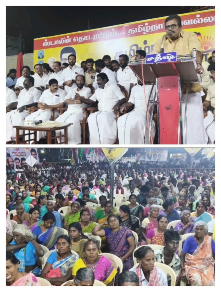 பொய்யான வாக்குறுதிகளோடு சில பேர் புறப்பட்டு வருவார்கள் அவர்களெல்லாம் நம்பாமல் எங்களை எங்களை காக்கின்ற கட்சி திமுக தான் என்று சொல்லி ஆதரவு தரப் போகிற நீங்கள் தான் என்ற காரணத்துக்காக தான் வந்திருக்கிறேன் அடுத்தவர்களை ஏசுவதற்கு அல்ல தூற்றுவதற்கு அல்ல அது எங்கள் வேலை அல்ல மீண்டும் நான் வருவேன் எப்போது என்றால் வெற்றி விழா கூட்டத்திற்கு தான் வருவேன் வெற்றிக்கு பின்னால் நன்றி அறிவிப்பு கூட்டம் உசிலம்பட்டியில் தான் நடக்கும் மீண்டும் முதல்வர் ஸ்டாலின் என்று இங்கே ஆதரவு வேண்டும் இப்படி ஒரு முதல்வர் நமக்கு இல்லை என்ற ஏக்கம் அவர்களுக்கு தமிழ்நாடு ஒரு வீர மண் என்பதை வீரம் செரிந்தவர்கள் வாழ்கின்ற மண் என்பதை எந்த நேரத்திலும் புயலையையும் சாதிக்க வல்லமை கொண்டவர்கள் என்பதை நிருபிக்கின்ற தேர்தலாக இருக்க வேண்டும்., அதன் அடையாளமாக மீண்டும் தமிழ்நாட்டில் திராவிட மாடல் ஆட்சி தொடர, உங்கள் ஆதரவை திமுக கூட்டணிக்கு தருக., குறிப்பாக இந்த தொகுதியில் தான் அதிக வாக்கு வித்தியாசத்தில் கழகம் வெற்றி பெற்றது என்ற தீர்ப்பை தாருங்கள் மீண்டும் வெற்றி விழாவில் சந்திப்போம்., எதிர்காலம் நம்முடையது அது ஒளிமயமானது., தமிழ்நாடு போராடும், தமிழ்நாடு வெல்லும்., என பேசினார்.,