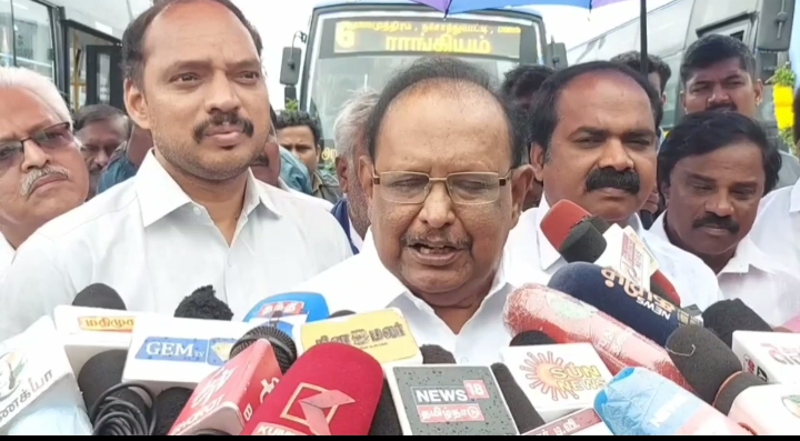 புதுக்கோட்டை பேருந்து நிலையத்தில் ஐந்து புதிய பேருந்துகளை அமைச்சர்கள் ரகுபதி மற்றும் மெய்ய நாதன் ஆகியோர் தொடங்கி வைத்தனர்