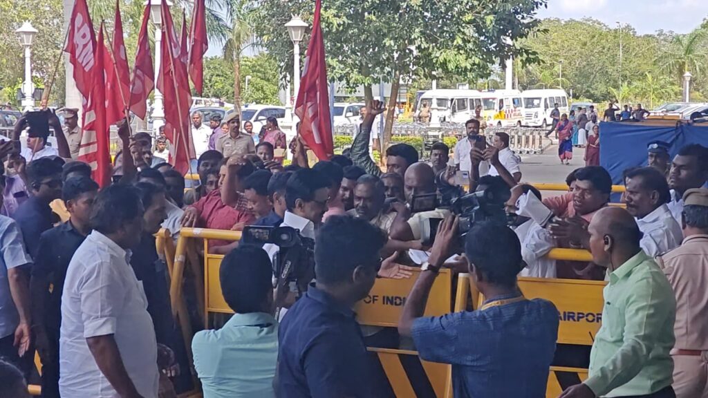 அப்போது பிரம்ம குமாரிகள் அமைப்பு மதுரையில் தொடங்கப்பட்டு 50 ஆண்டுகள் நிறைவடைந்ததை ஒட்டி ஆண்டு விழாவிற்கான அழைப்பிதழ் முதல்வரிடம் கொடுக்கப்பட்டது. தொடர்ந்து முதல்வர் விமான நிலையத்திற்குள் செல்லும்போது அங்கிருந்த நபர் ஒருவர் திடீரென எனது மகனை காணவில்லை தலைவரேஎன்ன கோஷம் எழுப்பியதால் பரபரப்பு ஏற்பட்டது. தொடர்ந்து முதல்வர் விமான நிலையத்திற்குள் சென்று ஏர் இந்தியா விமானம் மூலம் சென்னை புறப்பட்டார். முதல்வர் வருகையின் போது திடீர் என கோஷம் எழுப்பிய நபரால் பரபரப்பு ஏற்பட்ட நிலையில் காவல்துறையினர் அவரிடம் விசாரணை மேற்கொண்டு வருகின்றனர்.