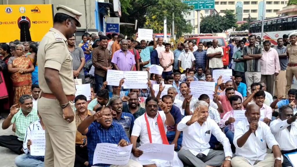 இந்நிலையில் மனு அளித்தும் எந்த ஒரு நடவடிக்கையும் எடுக்கப்படவில்லை என்று கூறி இன்று அந்த தொழிலாளர்கள் சிஐடியு நிர்வாகிகளுடன் வந்து மாவட்ட ஆட்சியர் அலுவலகம் முன்பு அமர்ந்து போராட்டத்தில் ஈடுபட்டனர். போராட்டத்தில் ஈடுபட்ட அவர்கள் உடனடியாக தங்களுக்கு வழங்க வேண்டிய சம்பளம், போனஸ் நிலுவைகளை உடனடியாக வழங்க வேண்டும் அதற்கு மாவட்ட நிர்வாகம் உடனடியாக நடவடிக்கை எடுக்க வேண்டும் என்று முழக்கங்களை எழுப்பினர்.