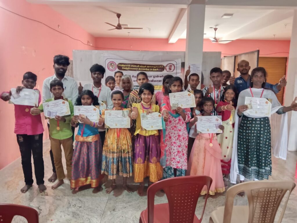 போட்டியில் பங்கேற்ற மாணவ,மாணவியர்கள் அனைவருக்கும் பதக்கம்,சான்றிதழ் வழங்கப்பட்டது. இயற்கை ஆர்வலர் புத்தக வாசிப்பாளர் கல்லானை சுந்தரம், பாரதிதாசன் வாசகர் வட்டம் சந்தோஷ் மற்றும் பெற்றோர்கள் பங்கேற்றார்கள்.