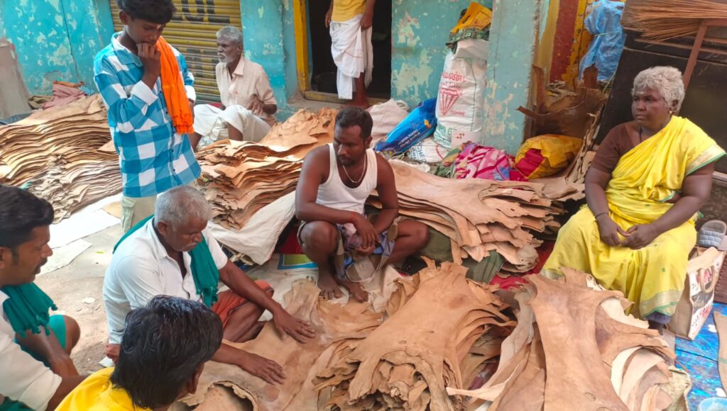 ஆட்டுத்தோல்களை வாங்கி தண்ணீரில் சுண்ணாம்புக்கல் சேர்த்து ஊற வைக்கிறார்கள். பிறகு அதில் உள்ள ரோமங்களை எல்லாம் நீக்கிவிட்டு, நான்கு நாள் ஊற வைத்த பிறகு, மீண்டும் தண்ணீரில் அலசி கத்தியை வைத்து சுரண்டி அதன் பிறகு ஆவாரம்பூ செடியை கொண்டு வந்து தண்ணீரில் தோலோடு ஊற வைக்கின்றனர். அதன் பிறகு கருவப்பட்டை, கடுக்காய் ஆகியவற்றையும் சேர்த்து தண்ணீரோடு ஊற வைக்க வேண்டும். காய வைத்த பிறகு மீண்டும் தண்ணீரில் நனைக்க வேண்டும். காலால் தேய்த்து அயன் செய்த மாதிரி விறைப்பாக்க வேண்டும்.