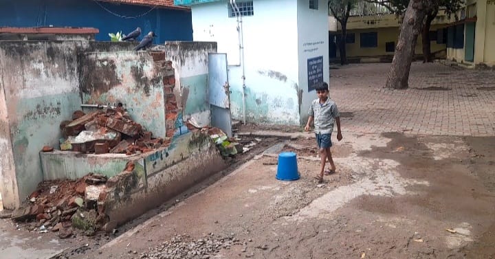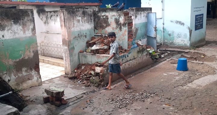 பருவமழை தீவிரமடைந்துள்ள நிலையில் எப்போது வேண்டுமானாலும் மீதி இருக்கும் கழிப்பறை கட்டிடம் இடிந்து விழக்கூடிய நிலைமையில் உள்ளது