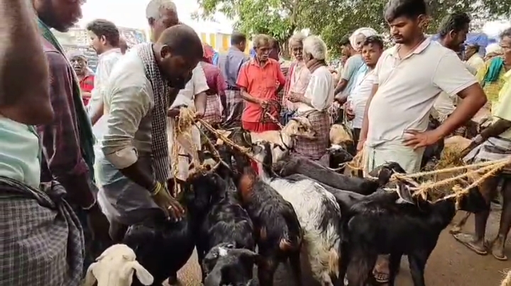 தீபாவளி பண்டிகை என்றாலே பட்டாசுகள் புத்தாடை உள்ளிட்டவைகளுக்கு அடுத்தபடியாக வீடுகளில் தீபாவளி பண்டிகையை கொண்டாடிய பிறகு குடும்பத்துடன் மாமிச உணவுகளை சாப்பிடுவது வழக்கம் அதிலும் குறிப்பாக ஆட்டு இறைச்சி அதிக அளவில் பொதுமக்கள் வாங்கி சமைத்து தீபாவளி பண்டிகையை கொண்டாடி வரும் நிலையில் ஒவ்வொரு வருடமும் தீபாவளி பண்டிகைக்காக ஆடுகளின் விலை அதிகரித்து வரும் அதே போல் இந்த வருடமும் வருகின்ற திங்கட்கிழமை தீபாவளி முன்னிட்டு இன்று வெள்ளிக்கிழமை தீபாவளி வார சந்தை நடைபெற்றது இந்த வார சந்தையில் புதுக்கோட்டை ராமநாதபுரம் சிவகங்கை உள்ளிட்ட பல்வேறு மாவட்டங்களில் இருந்து செம்மறி ஆடு வெள்ளாடு என 3000 மேற்பட்ட ஆடுகள் தற்பொழுது விற்பனைக்கு வந்து இறங்கி உள்ளது மேலும் டாட்டா ஏசி வாகனத்தில் நூற்றுக்கு மேற்பட்ட ஆடுகளை இறக்கும்போது வியாபாரிகள் போட்டி போட்டுக் கொண்டு ஆடுகளை வாங்குவதற்கு ஆர்வம் காட்டி வருகின்றனர்.