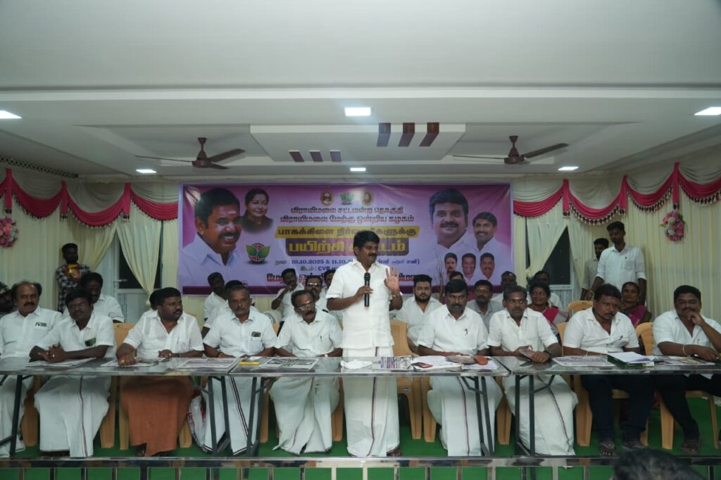 அஇஅதிமுக பொதுச்செயலாளர் சட்டமன்ற எதிக்க்கட்சி தலைவர் எடப்பாடியார் ஆணைக்கிணங்க புதுக்கோட்டை வடக்கு மாவட்டம் விராலிமலை சட்டமன்ற தொகுதி விராலிமலை நகரம் கழகம் சார்பில் பூத் நிர்வாகிகளுக்கு எதிர்வரும் 2026 சட்டமன்ற தேர்தலை எதிர்கொள்ளும் வகையில் அண்ணாதிமுக சார்பில் அமைக்கப்பெற்ற பூத் கமிட்டி நிர்வாகிகளுகு பயிற்சி அளிக்கும் வகையில் பயிற்சி முகாம் விராலிமலையில் உள்ள CVB திருமண மஹாலில் முன்னாள் அமைச்சர், மாவட்ட கழக செயலாளர் டாக்டர்.சி.விஜயபாஸ்கர் தலைமையில் நடைபெற்றது.