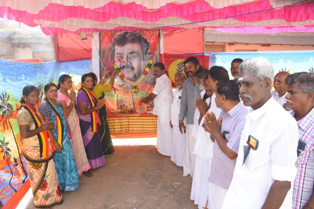 மதுரை வடக்கு மாவட்டம் சோழவந்தான் பேரூர் தேமுதிக சார்பாக நிறுவனத் தலைவர் விஜயகாந்த் நினைவு நாளை ஒட்டி அவரது திருவுருவப்படத்திற்கு மாலை அணிவித்து மரியாதை செய்யப்பட்டது அன்னதானம் நடைபெற்றது. வடக்கு மாவட்ட துணை செயலாளர் தங்கராஜ் தொகுதி பொறுப்பாளர் பொன் யாழினி பாலாஜி தலைமை வகித்தனர்.