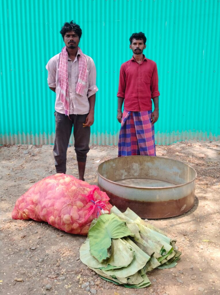 தாமரை பூ இலைகளை பறித்த இரண்டு இளைஞர்கள் கைது..,