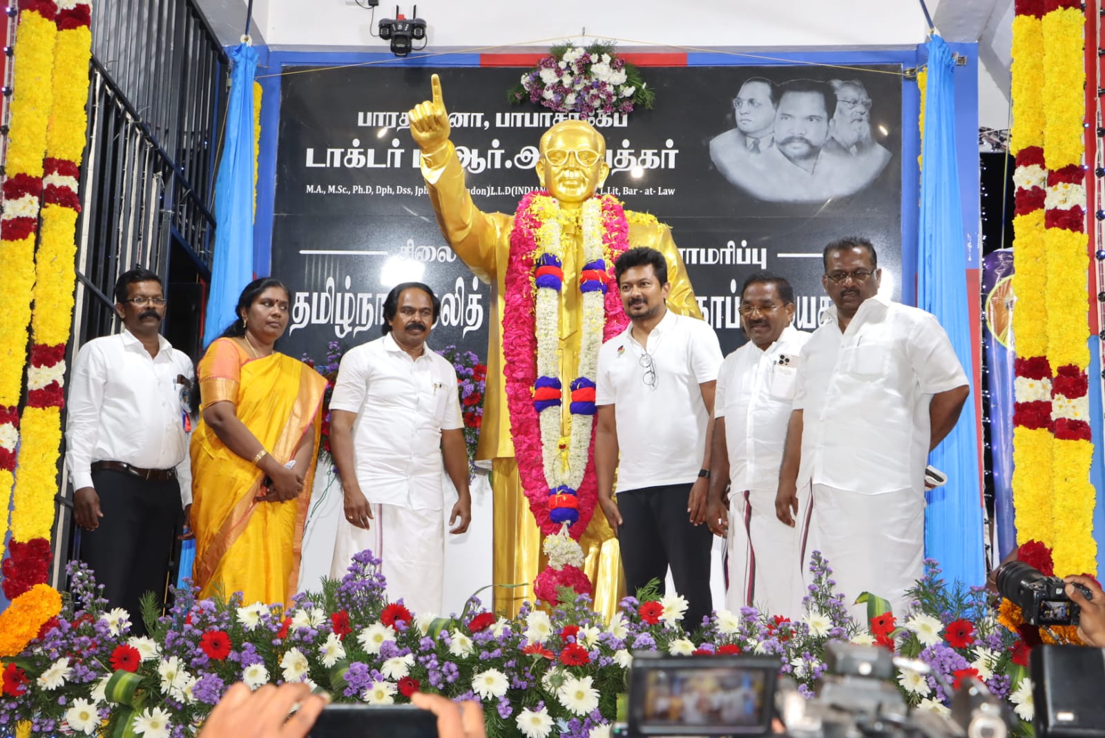 சட்டமேதை அம்பேத்கர் முழு உருவ வெண்கலச் சிலையை திறந்து வைத்தார்.