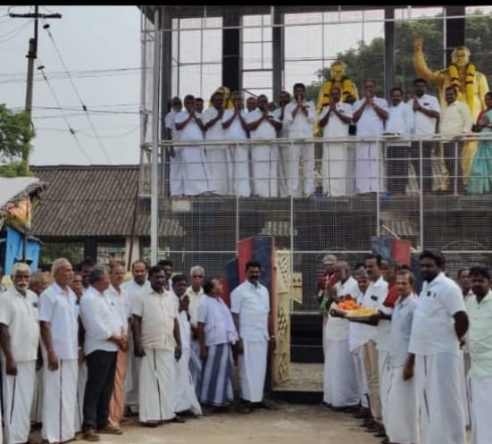 அரியலூர் மாவட்டம்,ஜெயங்கொண்டம் சட்டமன்ற தொகுதி,தா.பழூர்-கிழக்கு ஒன்றிய தி.மு.க சார்பில், திமுக இளைஞரணி செயலாளர்,மாண்புமிகு தமிழ்நாடு துணை முதலமைச்சர் உதயநிதி ஸ்டாலின் 48வது பிறந்தநாள் விழாவை முன்னிட்டு, தாபழூர் கிழக்கு ஒன்றிய திமுக செயலாளரும்,சட்டமன்ற உறுப்பினருமான க.சொ.க.கண்ணன் வழிகாட்டுதலின்படி, தா.பழூரில் அமைந்துள்ள,தந்தை பெரியார்,பேரறிஞர் அண்ணா, மொழிப்போர் தியாகி,மக்கள் தொண்டர், முன்னாள் எம் எல் ஏ க.சொ.கணேசன் முழு திருவுருவ வெண்கல சிலைக்கு மாலை அணிவித்து மரியாதை செலுத்தப்பட்டது. ,தொடர்ந்து பொதுமக்களுக்கு இனிப்புகள் வழங்கி பட்டது .