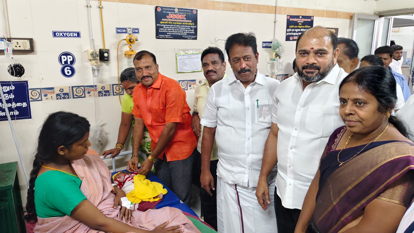 அதைத் தொடர்ந்து இராஜபாளையம் அரசு மகப்பேறு மருத்துவமனை வளாகத்தில் மகப்பேறு மருத்துவமனையில் பணிபுரியக்கூடிய துப்புரவு பணியாளர்களுக்கு வேஷ்டி, சேலை மற்றும் இனிப்புகள் வழங்கப்பட்டது. இதேபோல் சங்கரன்கோவில் முக்கு பகுதியில் தெற்கு நகர கழக சார்பில் பொதுமக்களுக்கு நலத்திட்ட உதவிகள் வழங்கப்பட்டன.