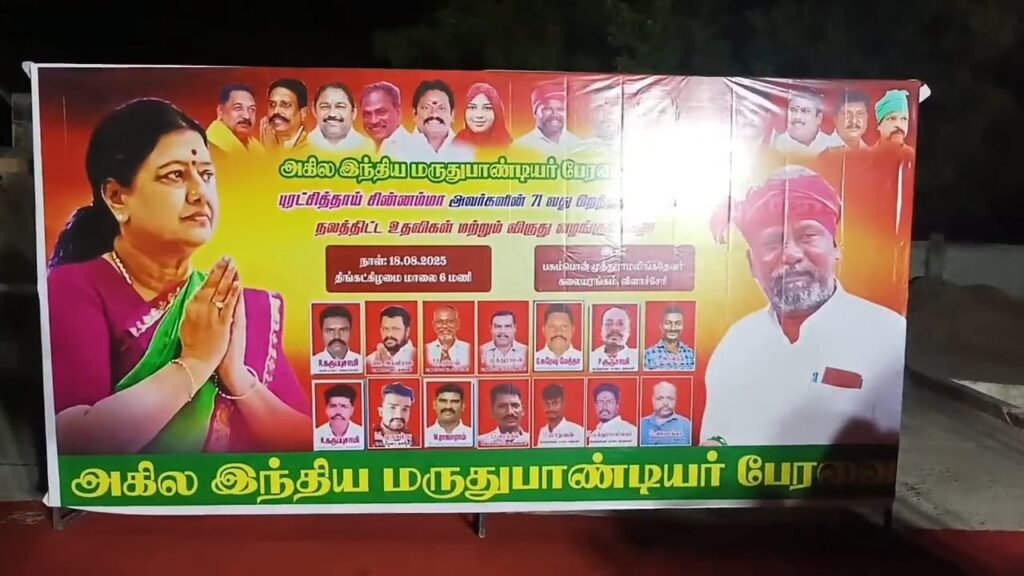 பொதுமக்களுக்கு அதிமுகவின் முன்னாள் பொதுச் செயலாளர் வி கே சசிகலாவின் 71ஆவது பிறந்தநாளை முன்னிட்டு மதுரை விளச்சேரி பகுதியில் அகில இந்திய மருதுபாண்டியர் பேரவை சார்பா V.K.சசிகலா பிறந்தநாள் விழா, நலத்திட்ட உதவிகள் மற்றும் விருது வழங்கும் விழா ஆகிய முப்பெரும் விழா நடைபெற்றது.