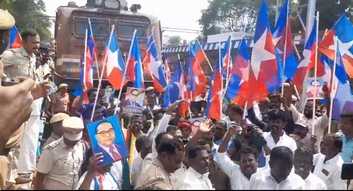 மதுரை மாவட்டம் சட்டமேதை அம்பேத்கரை பற்றி அவதூறாக பேசிய, மத்திய உள்துறை அமைச்சர் அமித்ஷாவை கண்டித்து, மதுரை புறநகர் மேற்கு மாவட்ட விடுதலை சிறுத்தை கட்சி சார்பாக மாவட்ட செயலாளர் சிந்தனை வளவன் தலைமையில் நிர்வாகிகள் சோழவந்தான் ரயில் நிலையத்தில் மறியல் செய்தனர். இதில் சுமார் ஐந்து நிமிடம் கால தாமதமாக நாகர்கோவில் டு கோயம்புத்தூர் ரயில் புறப்பட்டு சென்றது. ரயில்வே போலீஸ் இன்ஸ்பெக்டர் ஜெயபிரிட்டோ தலைமையில் நூற்றுக்கும் மேற்பட்ட போலீசார் பாதுகாப்பு பணியில் ஈடுபட்டிருந்தனர். சமயநல்லூர் டி.எஸ்.பி. ஆனந்தராஜ் சோழவந்தான் இன்ஸ்பெக்டர் ஆனந்தகுமார் சப்-இன்ஸ்பெக்டர் முருகேசன் ஆகியோர் தலைமையிலும் போலீசார் பாதுகாப்பு ஏற்பாடு செய்திருந்தனர். மறியலில் ஈடுபட்ட நூற்றுக்கு மேற்பட்ட விடுதலை சிறுத்தைகள் கட்சியை சேர்ந்தவர்களை சோழவந்தான் போலீசார் கைது செய்தனர். மதுரை ரயில்வே பாதுகாப்பு படை சப் இன்ஸ்பெக்டர் பாலசுப்ரமணியன். நரேந்திர பூபதி ஆகியோரும் பாதுகாப்பு பணியில் ஈடுபட்டிருந்தனர். வருவாய்த்துறை மண்டல துணை தாசில்தார் புவனேஸ்வரி. சோழவந்தான் வருவாய் ஆய்வாளர் கவுதமன். சோழவந்தான் கிராம நிர்வாக அலுவலர் மரியம், அமலா உள்பட கிராம உதவியாளர்கள் இதில் இருந்தனர். மறியலில் விடுதலை சிறுத்தைகள் கட்சியை சேர்ந்த நிர்வாகிகள் வாடிப்பட்டி மேற்கு ஒன்றிய செயலாளர் ராதா, வாடிப்பட்டி பேரூர் செயலாளர் அரசு விஜயா, உசிலம்பட்டி ஒன்றியம் பழனிச்சாமி, சேடப்பட்டி மணி செல்வம், செல்லம்பட்டி மூக்கையா அலங்காநல்லூர் ஒன்றியம் தமிழழகன், மதுரை மேற்கு ஒன்றியம் தமிழாளன்