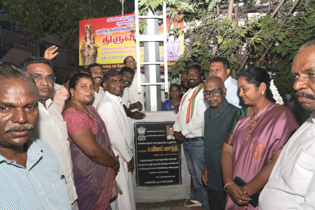 கோரிக்கையை ஏற்று ரூபாய் 7,50,000 ஒதுக்கப்பட்டு அதற்கான பணி முடிவடைந்த நிலையில் அதன் திறப்பு விழா நடைபெற்றது. இதில் சிறப்பு விருந்தினராக பாராளுமன்ற உறுப்பினர் விஜய் வசந்த் கலந்து கொண்டு சோலார் மின் விளக்கை திறந்து வைத்தார். இதே போல் தாழக்குடி பேரூராட்சிக்குட்பட்ட வீரநாராயணமங்கலம் பகுதியில் சோலார் மின்விளக்கு அமைக்கப்பட்டது. மேலும் மறவன்குடியிருப்பு, மேலகிருஷ்ணன் புதூர் பகுதியிலும் பாராளுமன்ற உறுப்பினர் நிதியில் இருந்து அமைக்க பட்ட சோலார் மின்விளக்குகளையும் விஜய் வசந்த் எம்பி திறந்து வைத்தார்.