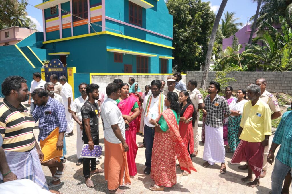 இதனை அறிந்த அப்பகுதியை சேர்ந்த நூற்றுக்கு மேற்பட்ட ஊர்மக்கள் திரண்டு இடிக்க விட மாட்டோம் என போராட்டத்தில் ஈடுபட்டனர். மேலும் அதிகாரிகளை கண்டித்து கோஷங்களை எழுப்பினர் அப்போது அங்கு போலீஸ் குவிக்கப்பட்டதால் உடனடியாக சாலை மறியலில் ஈடுபட்டனர் இதனால் பரபரப்பு ஏற்பட்டது. பின்னர் அதிகாரிகள் பேச்சுவார்த்தை நடத்தி கால அவகாசம் தருவதாக தெரிவித்தனர். ஆனால் அதனை ஏற்கமறுத்து ஊர்மக்கள் வாக்குவாதத்தில் ஈடுபட்டனர். மக்கள் பயன்படுத்தி வரும் இடத்தை ஆக்கிரமிக்க கூடாது நீதிமன்றமே உத்தரவிட்டாலும் மக்களின் விருப்பமில்லாமல் அதை நடைமுறைப்படுத்தக் கூடாது என வாதிட்டனர்.