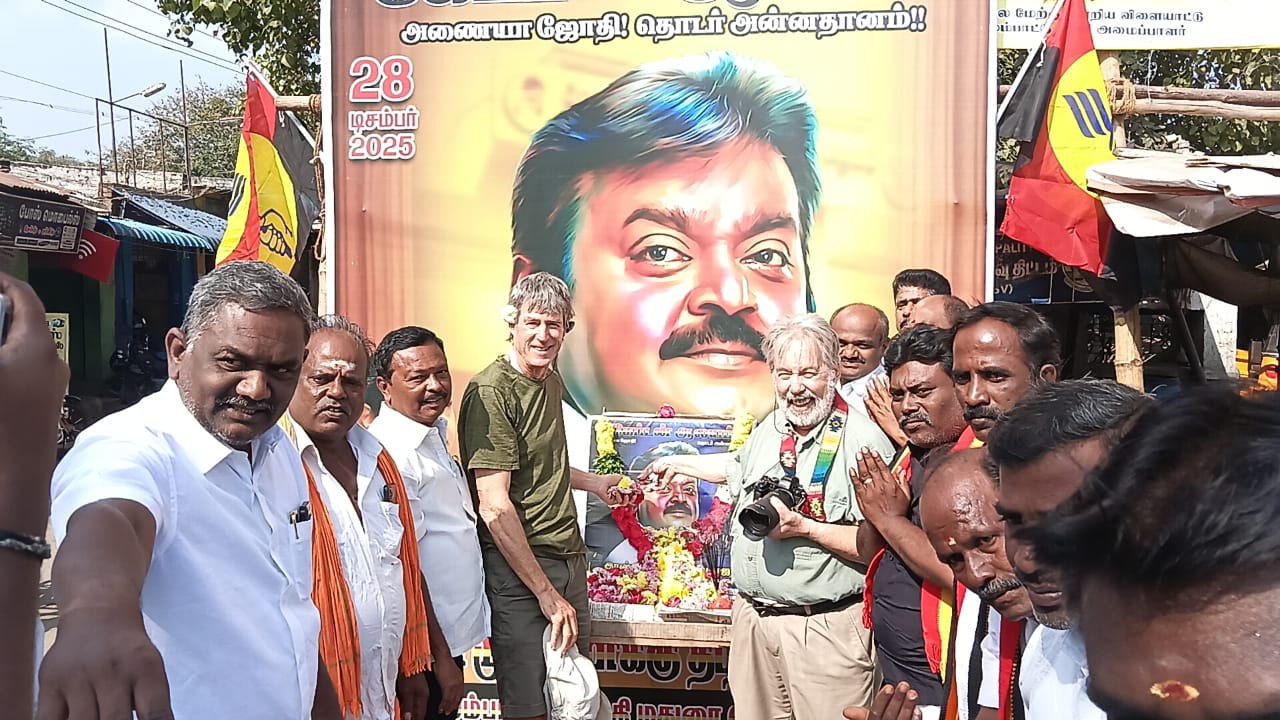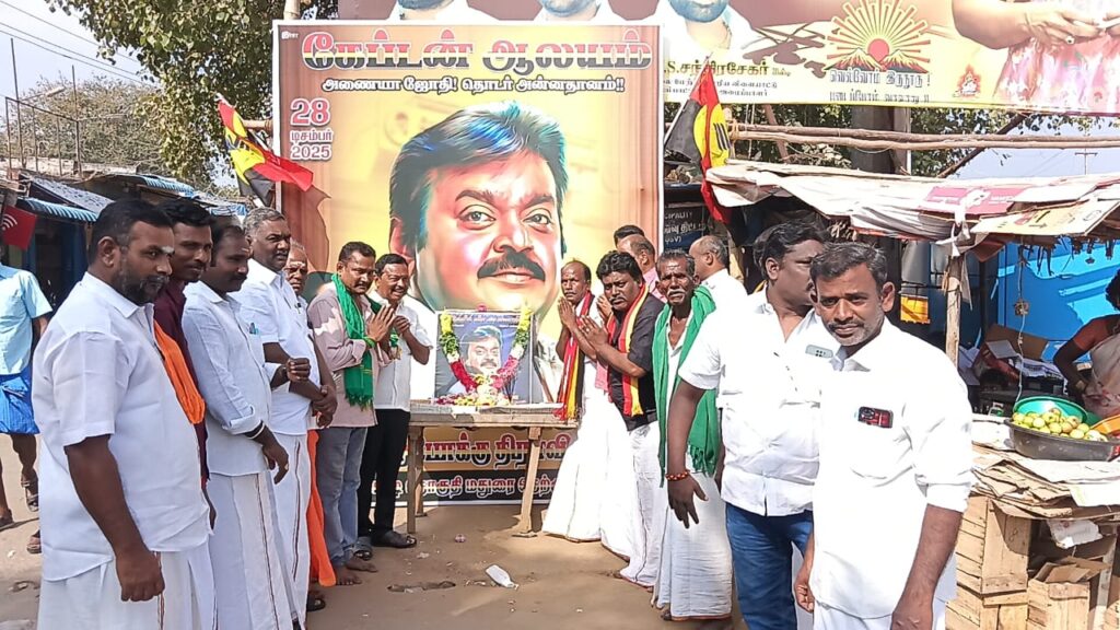 இதன் ஒரு பகுதியாக மதுரை மாவட்டம் உசிலம்பட்டி திருமுருகன் கோவில் அருகில் மறைந்த தேமுதிக தலைவர் கேப்டன் விஜயகாந்தின் இரண்டாம் ஆண்டு நினைவு தினத்தை முன்னிட்டு உசிலம்பட்டி தொகுதி பொறுப்பாளர் ரவிச்சந்திரன் தலைமையில், பொதுக்குழு உறுப்பினர் கருமாத்தூர் பாண்டி முன்னிலையில் கேப்டன் விஜயகாந்தின் திருவுருவப்படத்திற்கு மலர் தூவி மரியாதை செலுத்தினார்கள். மேலும் அங்கு வந்த வெளிநாட்டு சுற்றுலா பயணிகள் விஜயகாந்தின் திருவுருவ படத்திற்கு மலர்தூவி மரியாதை செலுத்தினர்.