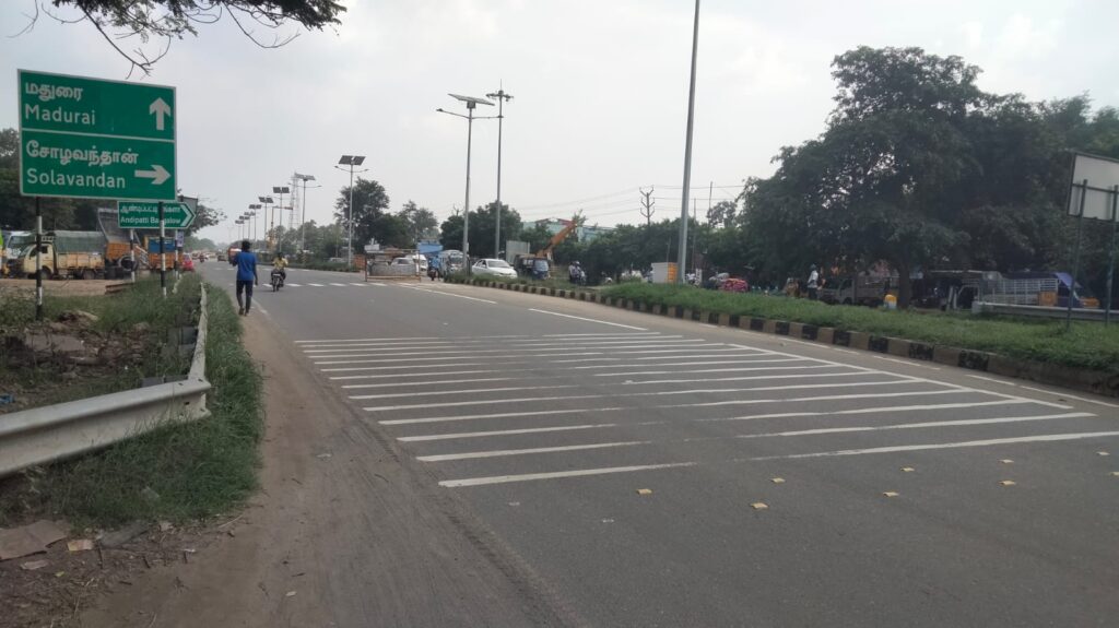 மதுரை மாவட்டம் வாடிப்பட்டி அருகே ஆண்டிபட்டி பங்களாவில் தாலுகா அலுவலகம் பின்புறம் துவங்கி கச்சை கட்டி பிரிவுக்கு முன்பாக தேசிய நான்கு வழி சாலையில் புதிதாக மேம்பாலம் கட்டப்பட்டுள்ளது. இந்த பாலத்தின் கட்டுமான பணி முடித்து தற்போது திறப்பதற்கு வெள்ளோட்டம் பார்க்கப்பட்டது. இந்நிலையில் வாடிப்பட்டி, கச்சைகட்டி பகுதியில் இருந்து சோழவந்தான் செல்வதற்கு திண்டுக்கல் மதுரை நான்கு வழிச்சாலையில் பெரியார் பாசன கால்வாய் அருகே அமைக்கப்பட்டுள்ள தடுப்பு பாதை வழியாக சோழவந்தான் பிரிவிற்கு மதுரை திண்டுக்கல் தேசிய நெடுஞ்சாலையை கடந்து செல்ல வேண்டும்.