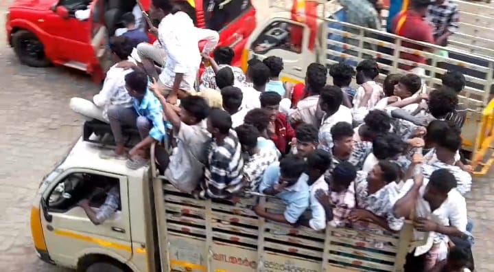 வாடிப்பட்டியில் நடைபெற்ற தவெக கூட்டத்திற்கு தொண்டர்கள் ஆபத்தான நிலையில் சென்றனர்.